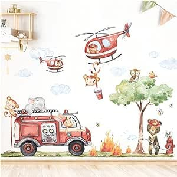Little Deco DL960-4 XXL Wall Sticker Fire Brigade Set Children's Room Animals Clouds Tree Wall Sticker Baby Room Self-Adhesive Decoration