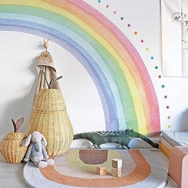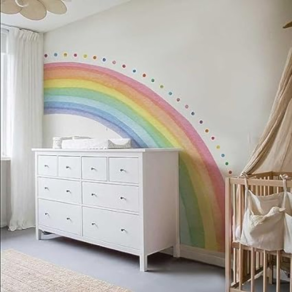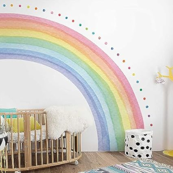 Neukids FABRIC Giant Half Rainbow Wall Sticker Self-Adhesive Rainbow Polka Dots Wall Sticker Bedroom Living Room Children's Room Baby Room Wall Sticker Corridors Wall Decoration 200 x 180 cm