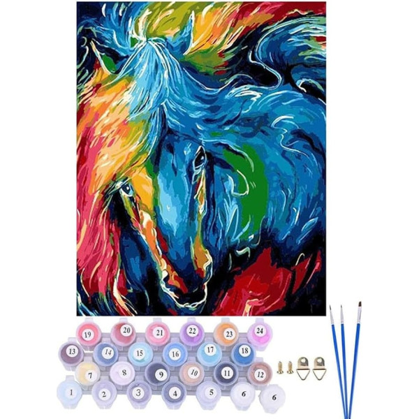CaptainCrafts Paint by Numbers Adults, DIY Art Painting by Numbers Canvas Acrylic Paint Wall Art Gifts Home Wall Decor 16 x 20 Inches (Abstract Colourful Oil Painting Horse, Frameless)