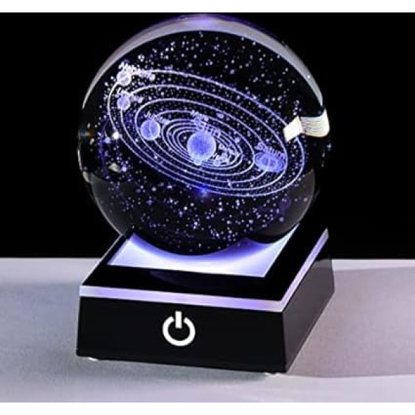 8 см K9 Кристалл 3D Солнечная система шар с черный светодиод красочные свет базы, гравировка Солнечная система звезда планета модель украшен