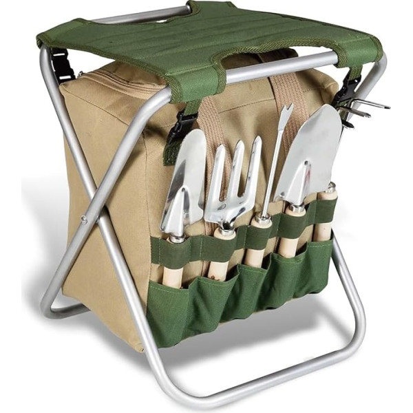 BIKAIN Складной садовый табурет - набор инструментов - сумка на молнии для хранения - включает 5 инструментов с деревянными ручками