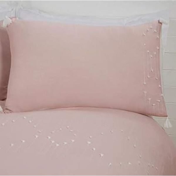 Sleepdown Luxury Boho Embroidered Panel Band Plain Blush Pink White Tassels Easy Care Soft Cuddly Duvet Cover Quilt Bedding Set with Pillowcases - Double (200 cm x 200 cm)