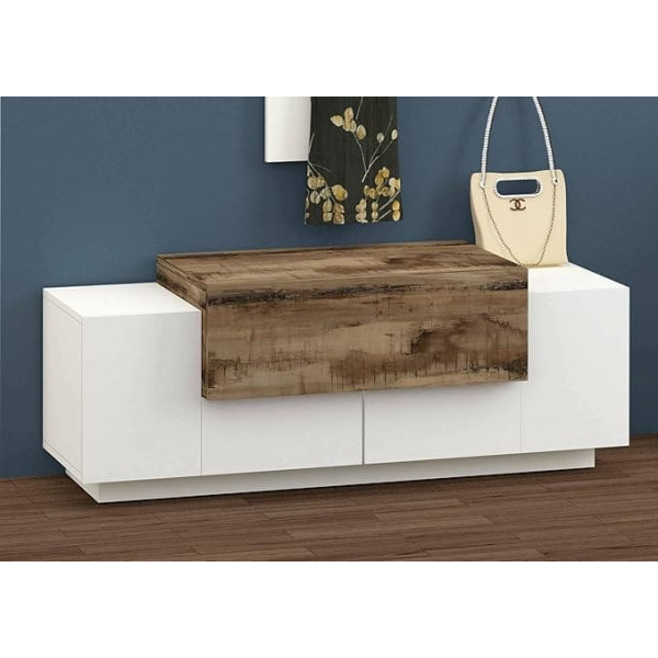 Dmora Мебель для прихожей с 3 дверцами, сделано в Италии, сервант для гостиной, подставка под телевизор, 120 x 45 x 46 см, белый глянец и цвет клена