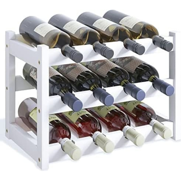 Smibuy Бамбуковая винная стойка, держатель для 12 бутылок, 3 яруса отдельно стоящих стоек для хранения для кухни, кладовой, подвала, бара (белый)