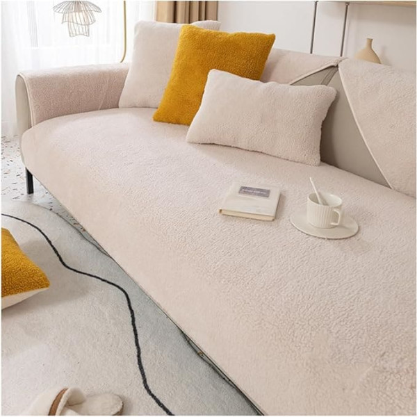 ‎Axroad Mall Axroad Mall Super Soft Sofa Slipcover 1/2/3/4 Seater Universal Non-Slip L Shape Couch Cushion Cover Warm Sherpa Fabric Furniture Protector Sofa Cover for Living Room (Beige, 70x70cm)