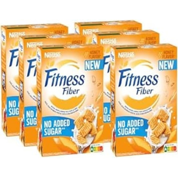 Nestlé Fitness Fibre Honey Flavour No Added Sugar Cereals, хрустящие хлопья из цельного зерна с клетчаткой, упаковка из 6 (6 x 310 г)
