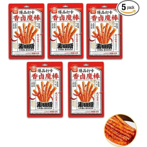 McKona Spicy Spiced 62 g Per Bag Big Latiao Spicy Chinese Snacks, Hot & Spicy Stick Gluten Strips, Sharp Wheat Snack Classic Hot Strips for the Office (Spicy Spicy Stick) (5 Pieces)