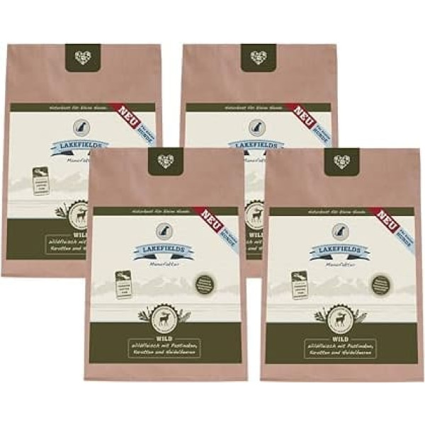 LAKEFIELDS Сушеное мясо Меню Дичь - для взрослых собак мелких пород - 4 x 1 кг - Беззерновой полнорационный корм - Олень и оленина