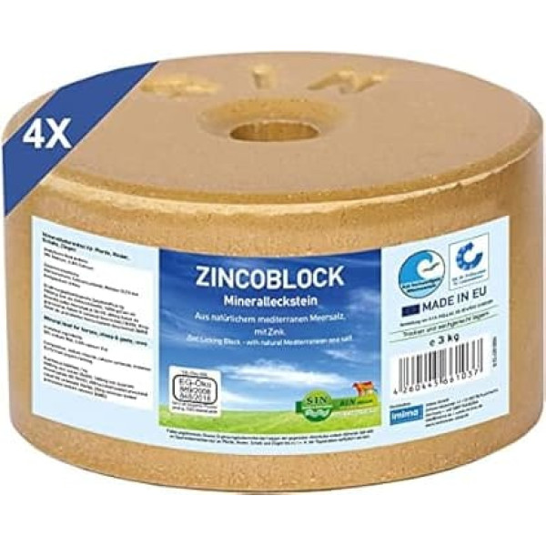 imima Zincoblock Set 4 x 3 кг - Минеральный лизун для лошадей с цинком, железом, кобальтом и селеном - Лизуны для лошадей со средиземноморской солью - До