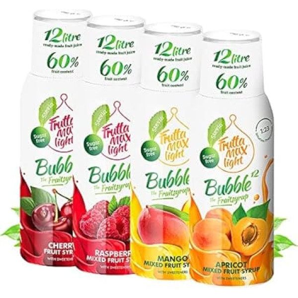 4 x 500 мл Легкий вишнево-абрикосовый сироп с малиной и манго для фитнеса от Frutta Max с 60% содержанием фруктов без сахара и стевии