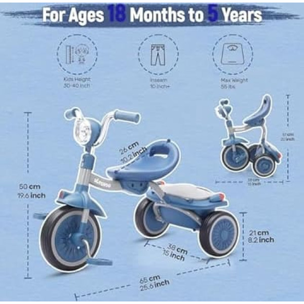 Детский трехколесный велосипед UBRAVOO, складной трехколесный велосипед для малышей с педалями, крутым светом, прочными колесами и удобным си