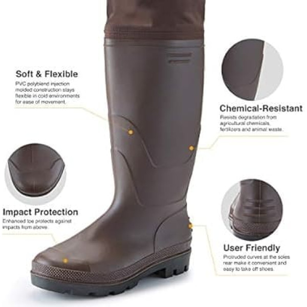 TIDEWE Hip Waders Легкие набедренные сапоги для мужчин и женщин 2-слойные ПВХ/нейлон рыбалка Hip Wader (зеленый и коричневый)