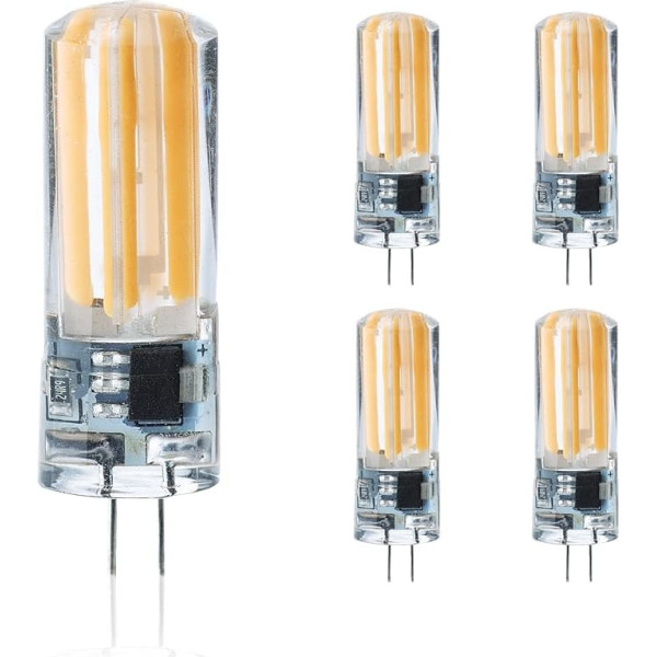 Лампа G4 LED 230 В со штырьковым цоколем, диммируемая, теплый белый, упаковка из 5 штук, 5 Вт заменяет лампу накаливания 40 Вт, 400 лм, 3000 К, COB, светоди