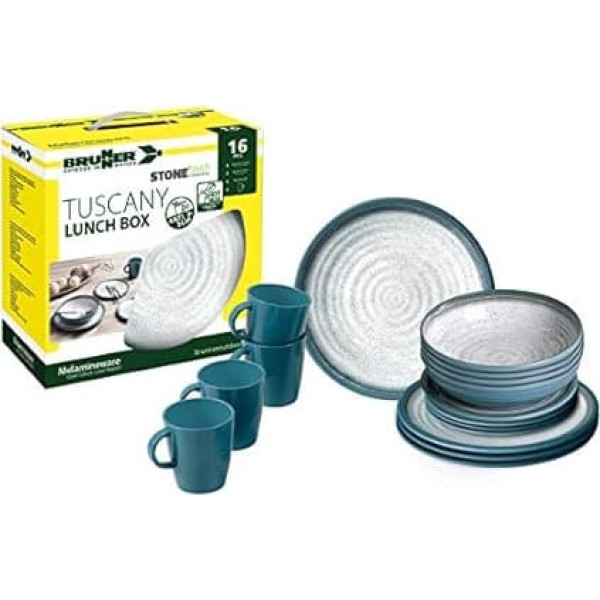 Brunner Набор меламиновой посуды ESS, ланч-бокс, 16 предметов для кемпинга, набор тарелок и чашек, синий, серый