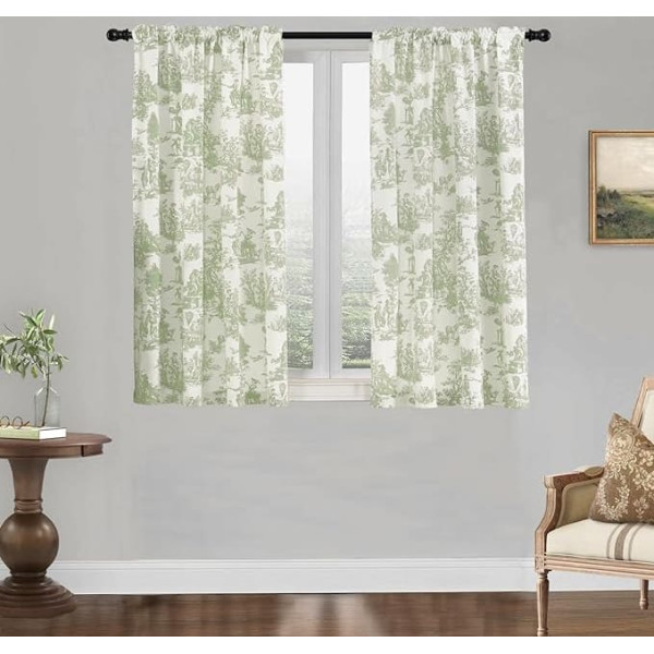Шалфей Зеленый Шторы Кухня Ванная Окно Комплект из 2 Небольшой Короткий Весна Цвет стержня Карман Toile Цветочные Cottagecore 48 Дюймов Длина, Светл