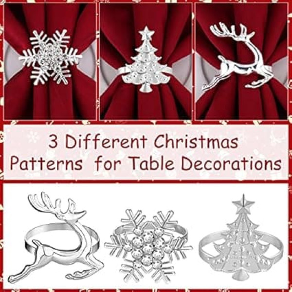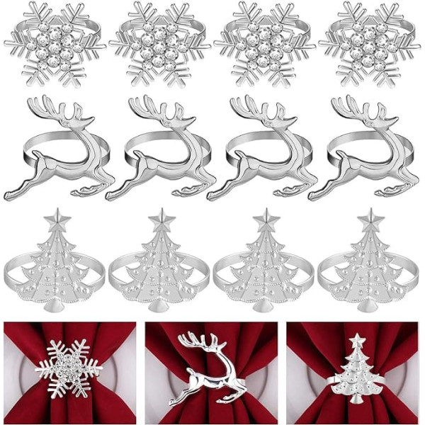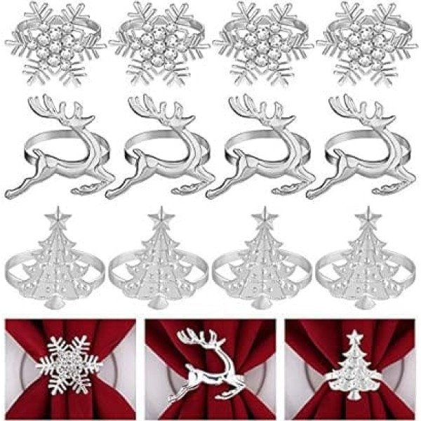 FEPITO Набор из 12 рождественских колец для салфеток, кольца для салфеток "Рождественские елки", кольца для салфеток "Лось", держатель для салфе