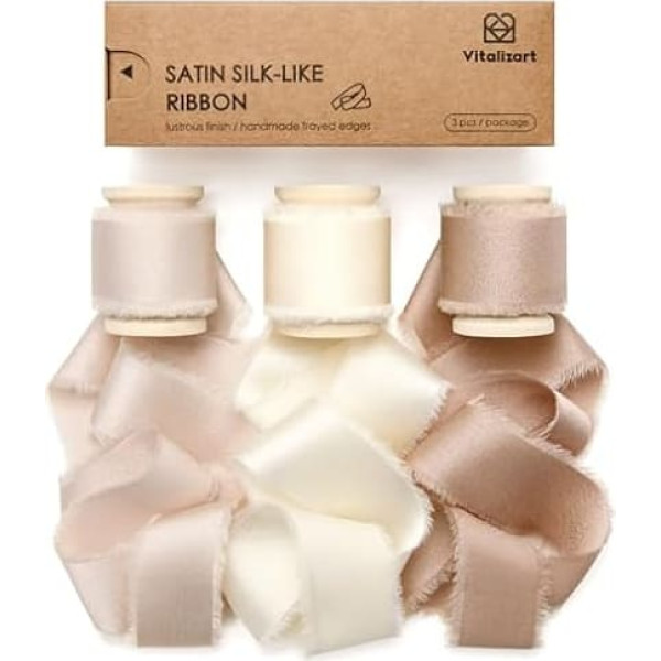Vitalizart атласная шелковая лента шампань и крем и нюд 1 дюйм х 15 ярдов деревянная катушка, ручной работы обтрепанная подарочная лента для упак