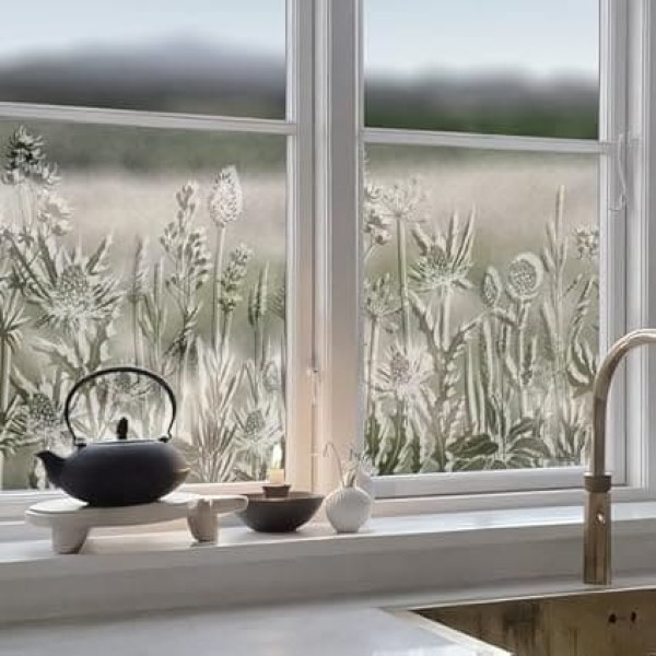 funlife Непрозрачная пленка для окон Ботаническая непрозрачная пленка для окон Утолщенные цветы Декоративная пленка для окон Чертополох и од