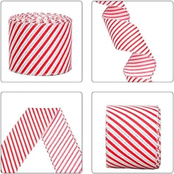 Lezevn 3 рулона 6,3 см x 6 метров Рождественская лента с проволочным краем и глиттерной лентой Красная и белая лента Рождественская елка Лента Фе