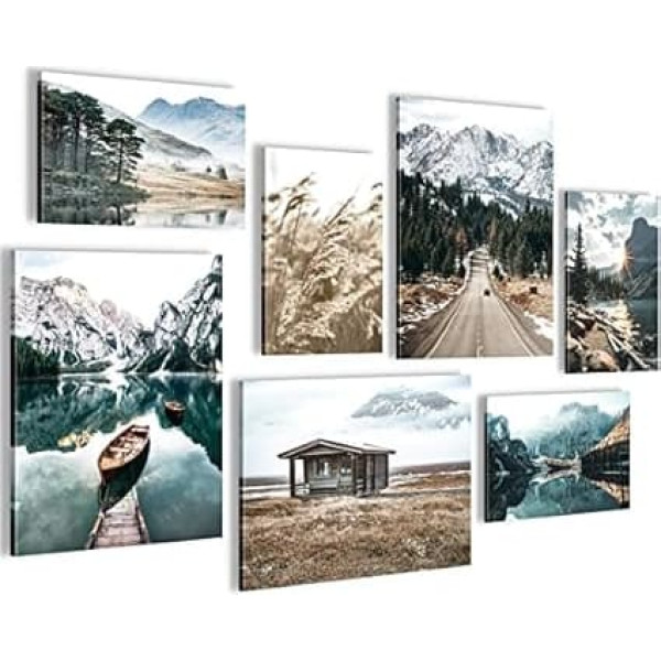 Novart Wall Pictures Lake Mountains Landscape - Completely Ready to Hang - Nature Living Room Bedroom - 7 Modern Mood Pictures - N007371a