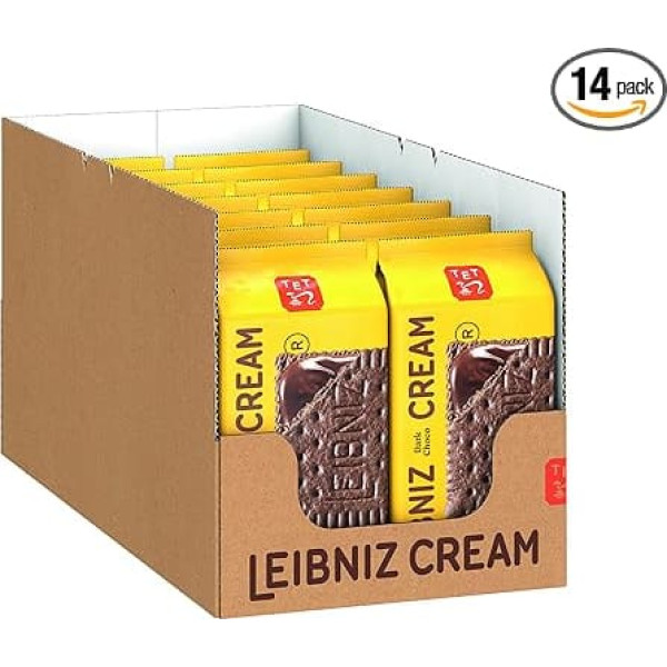 LEIBNIZ Cream Dark Choco, 14 штук, хрустящее какао-печенье с нежным шоколадным кремом, объемная упаковка для запасов или на продажу (14 x 190 г)