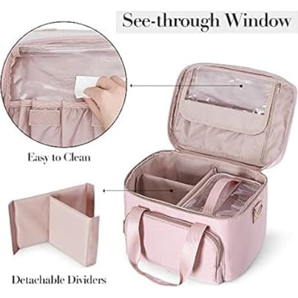 Сумка для макияжа Prokva Travel Bag с 2 отдельными косметичками, большой органайзер для макияжа для женщин, розовый