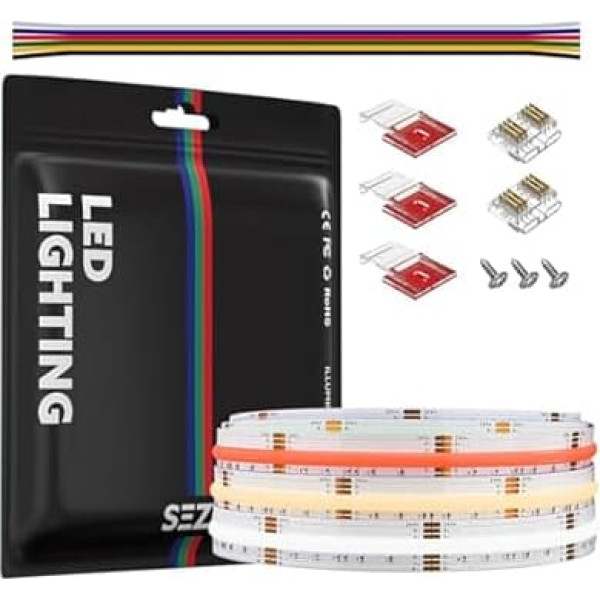 SEZO 3M RGB CCT FCOB LED Strip DC24V 2520LEDs COB LED Strip Flexible Dimmable RGB Warm White + Cool White High Density LED Fairy Lights 12 mm IP30 Not Waterproof for Indoor Decoration