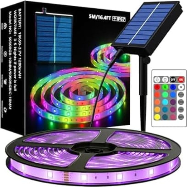 MIWATT Солнечные светодиодные ленты на открытом воздухе, 5 м солнечных батарей RGB светодиодные ленты SMD 5050 светодиодные огни, IP67 водонепроница