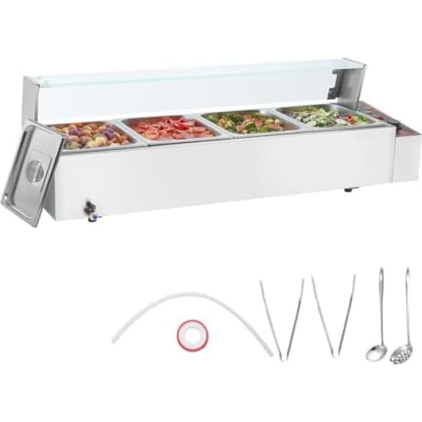 VEVOR Коммерческий подогреватель продуктов с 4 x 8 Qt контейнерами, электрический паровой стол со стеклянной крышкой, 1500W столешница из нержаве