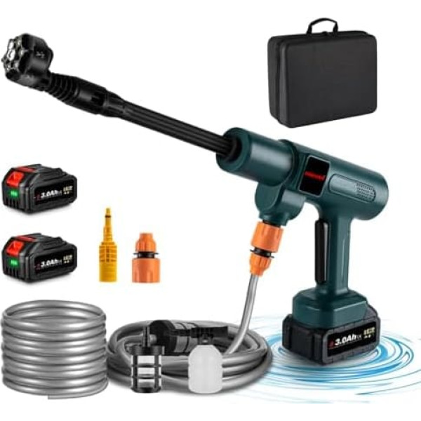 ONEVAN Аккумуляторная мойка высокого давления с батареями 2 x 3.0 Ah, 60 бар Мобильная мойка высокого давления Автомобильная аккумуляторная мойка