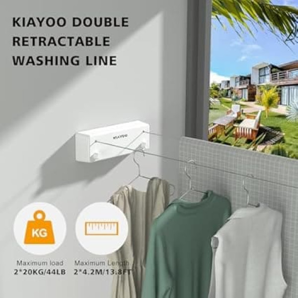 KIAYOO Двойная выдвижная линия для одежды, настенная вращающаяся сушилка для внутреннего и наружного использования, прочная и выдвижная лини