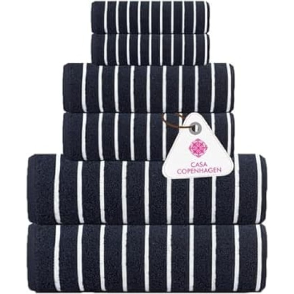Casa Copenhagen Ecstatic 6 Piece Towel Set - Navy Blue 600gsm 2 Bath Towels, 2 Hand Towels, 2 Face Cloths Soft Egyptian Cotton for Bathroom, Kitchen and Shower