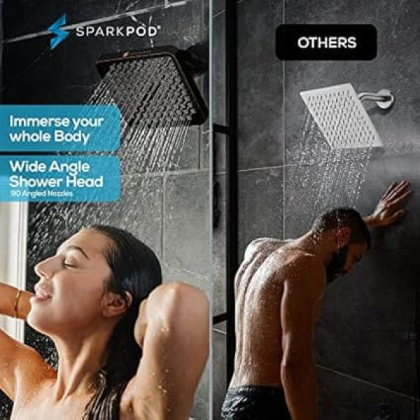 Фиксированная душевая лейка SparkPod - дождь под высоким давлением - роскошный современный вид - простая установка без инструментов - идеальная