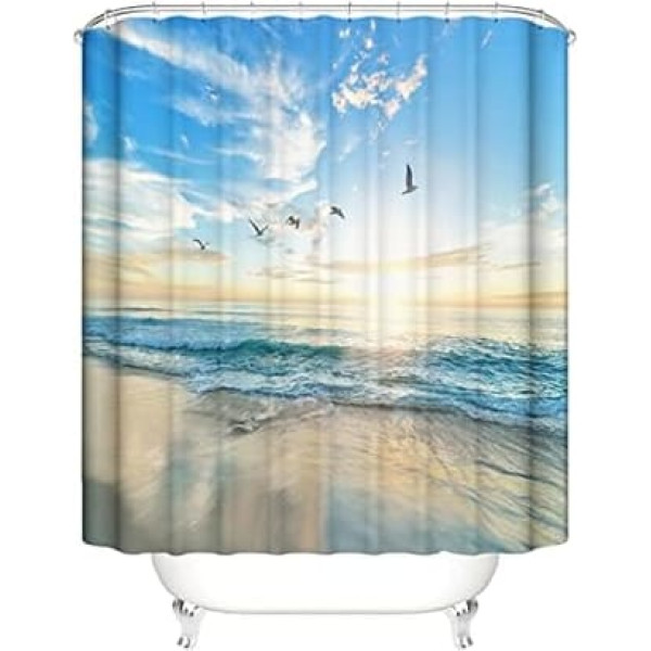 OCEUMACO 3D Пляжный Мотив Занавес Для Душа 240 x 200 см Синий Морской Пейзаж Занавески Для Душа Текстиль Анти-плесень Водонепроницаемый Птицы Закат