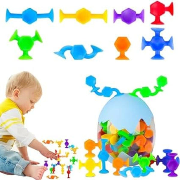 Graplan Pack of 48 Suction Cup Toy Children, Bath Toy, Montessori Toy from 3 Years, Bath Toy, Sensory Toy, Silicone Building Blocks Toy for 3 4 5 6 Years Children Boys Girls