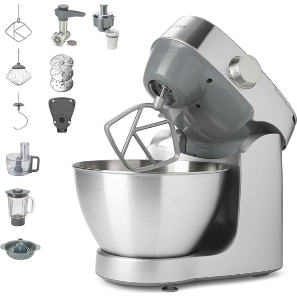 Kenwood Prospero+ KHC29A.R0SI Пищевой комбайн, чаша из нержавеющей стали объемом 4,3 л, набор аксессуаров из 10 предметов: мясорубка, миксер, соковыжималка