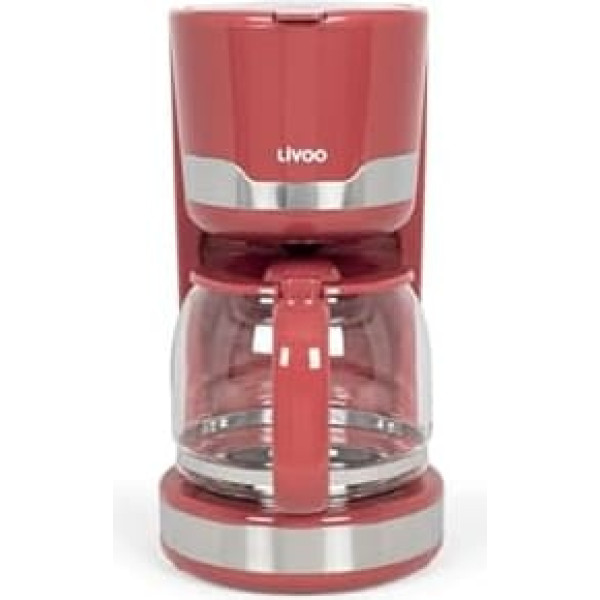 Электрическая кофеварка Livoo DOD201 - емкость 14 чашек, 1000 Вт, многоразовый фильтр, поддержание тепла, противокапельная система, красный чили