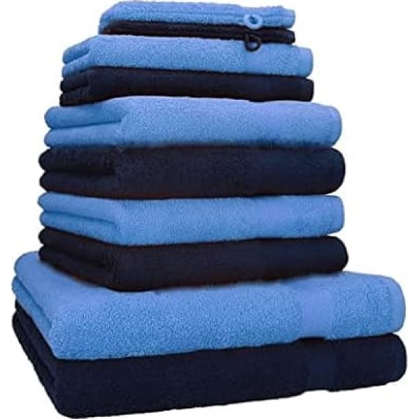 Набор полотенец из 10 предметов "Premium" темно-синий и светло-синий, качество 470 г/м², 2 банных полотенца 70 x 140 см, 4 полотенца для рук 100 x 50 см, 2 гос
