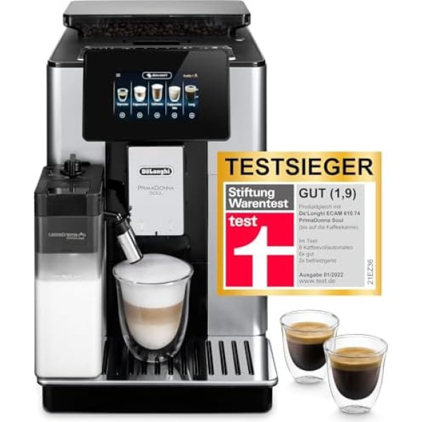 De'Longhi PrimaDonna Soul Perfetto ECAM 612.55.SB Полностью автоматическая кофемашина с молочной системой LatteCrema + оригинальный фильтр для воды EcoDecalk DLSC 500 Descaler DLSC