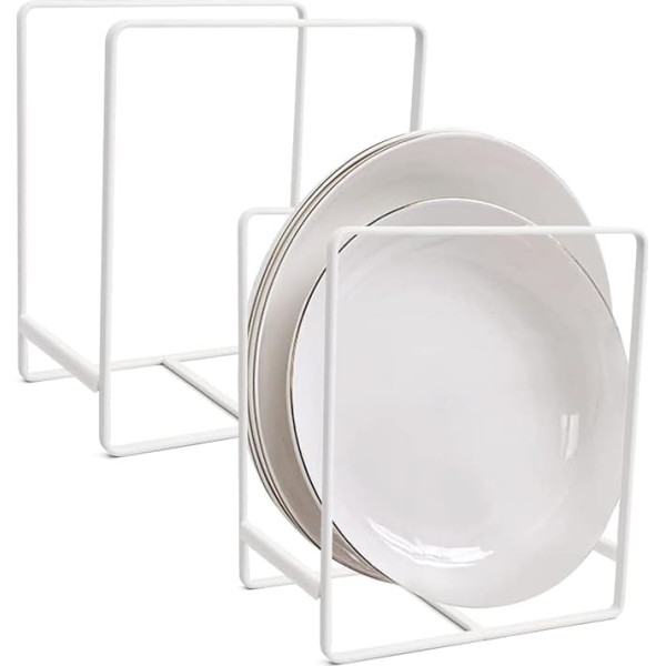Anseom Pack of 2 Multifunctional Dish Drainer Tableware, Metal Plate Holder Drawer with Silicone Protective Cover, Pot Lid Holder, Kitchen Cabinet Storage Organiser (White)
