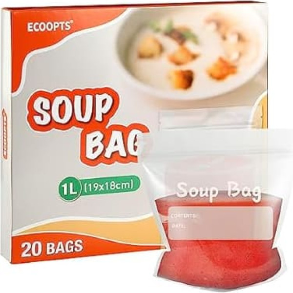 ECOOPTS Герметичные пакеты для заморозки 1 литр Многоразовые пакеты для супов и соусов (упаковка из 20)