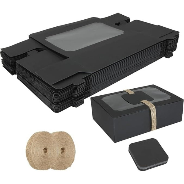 CYEER Набор из 12 черных коробок из крафт-бумаги 22 x 15 x 7 см Коробка для печенья с прозрачным окном из ПВХ Коробки для угощений Кондитерские пода