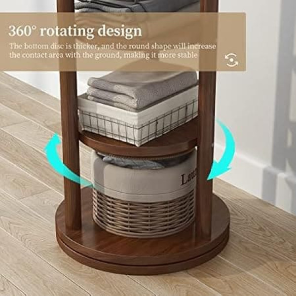 Kungfuwood Стойка для пальто, вращающаяся деревянная вешалка для пальто с 3 полками и 3 перекладинами, прочная и легко собираемая стойка для прих