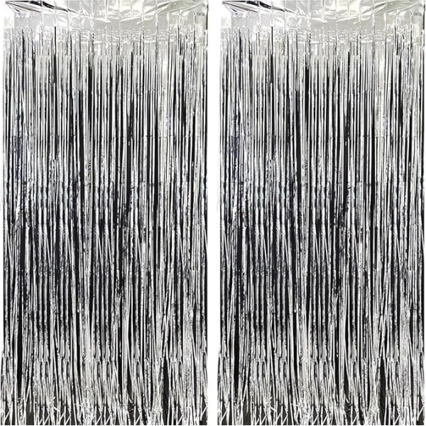 lafomukea Fransenvorhängeus silberfarbener Lametta-Folie, Fransenvorhang, Hintergrund für Fotohintergrund, Tür-Wandbehang, Party, Büro-Dekoration, 2 Stück