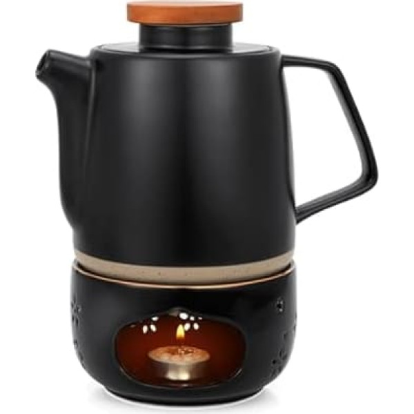 TELANKS Керамический чайник с ситечком и подогревателем 850 мл, чайник с ситечком съемный чайник фарфор черный