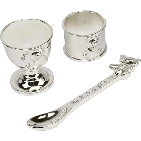 Набор из чашки, кольца для салфеток и ложки Twinkle Twinkle Egg Cup - с серебряным покрытием - идеально подходит в качестве подарка на рождение ребенка