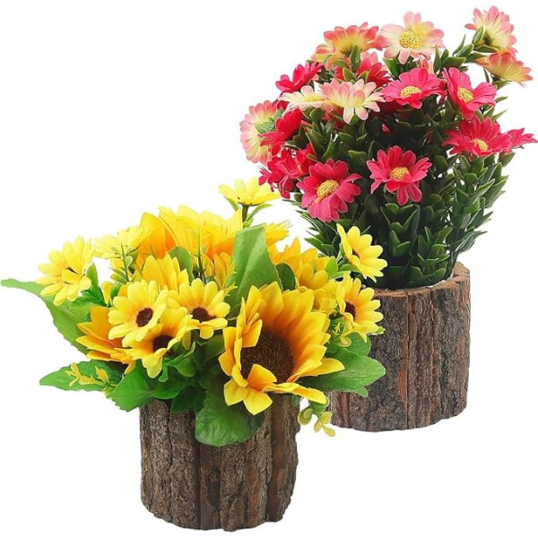 HAKZEON 2 шт. искусственные цветы в горшках, искусственное растение в деревянном горшке, декоративные искусственные маргаритки и искусственны
