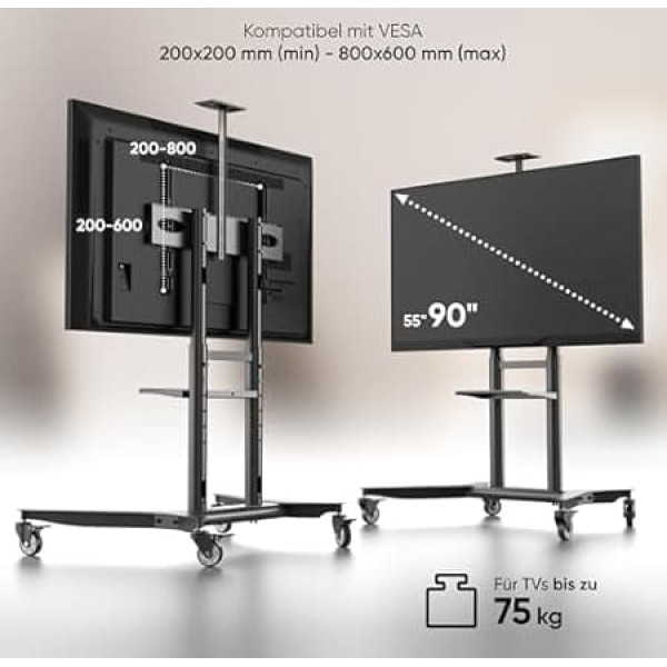 Подставка для телевизора роликовая для 55-90 дюймовых телевизоров до 75 кг, подставка для телевизора регулируемая по высоте 200 x 200 - 800 x 600 VESA Те