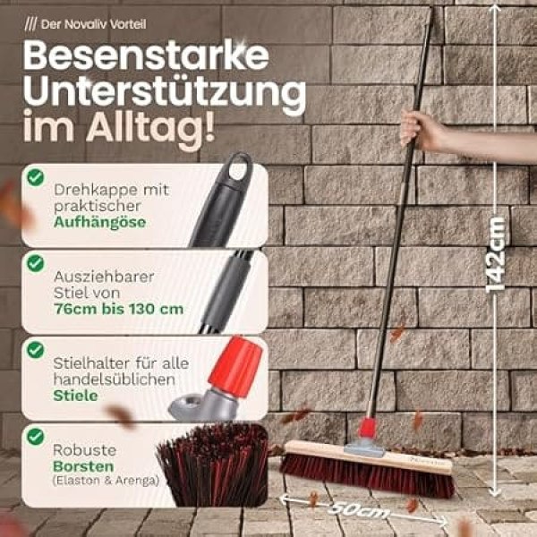 Novaliv 4 x Street Broom 50 cm I with Handle I Arenga-Elaston Black/Red I Telescopic Handle I Broom for Outdoor I Industrial Broom Garden Broom Whisk Whisk All-purpose Broom