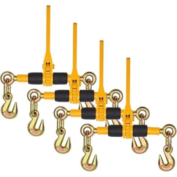 VEVOR Ratchet Load Tensioner 6.3-8mm 2600lb Safe Working Load, Set of 4 Load Ties with 2 Grab Hooks, Chain Tensioner for Transport Chains, Heavy Duty Tow Chain Ratchet Chain Ties